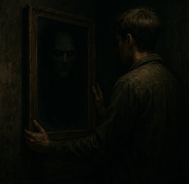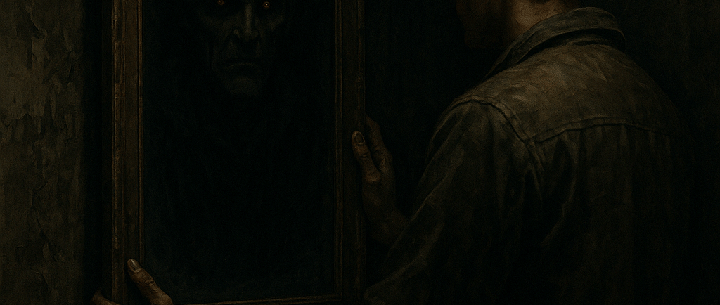 حمزہ نے آئینے میں دیکھنا چاہا، مگر جیسے ہی اس کی نظر پڑی، وہ چونکا۔ اس میں اس کا عکس نہیں تھا… بلکہ ایک دوسرا چہرہ—پیلے رنگ کی آنکھیں، سیاہ ہونٹ اور ایک ایسے شخص کی پرچھائیں جو انسان کم اور سایہ زیادہ لگتا تھا۔ وہ چہرہ ہلکا سا مسکرایا… اور بولے بغیر بول اٹھا: